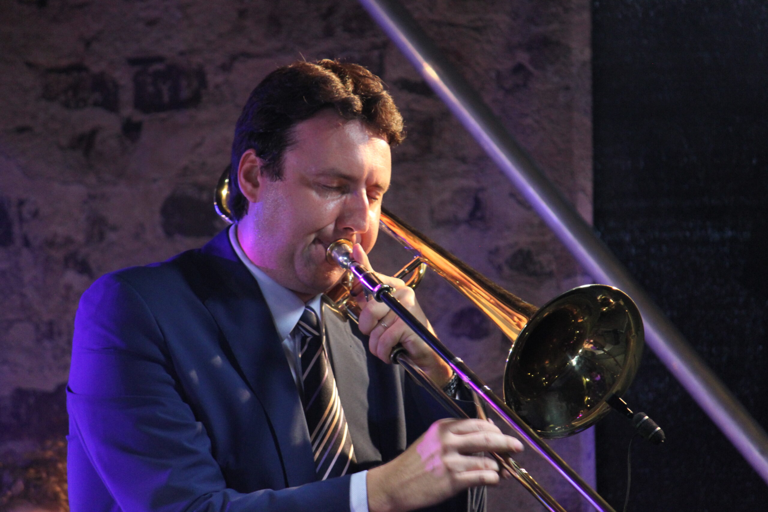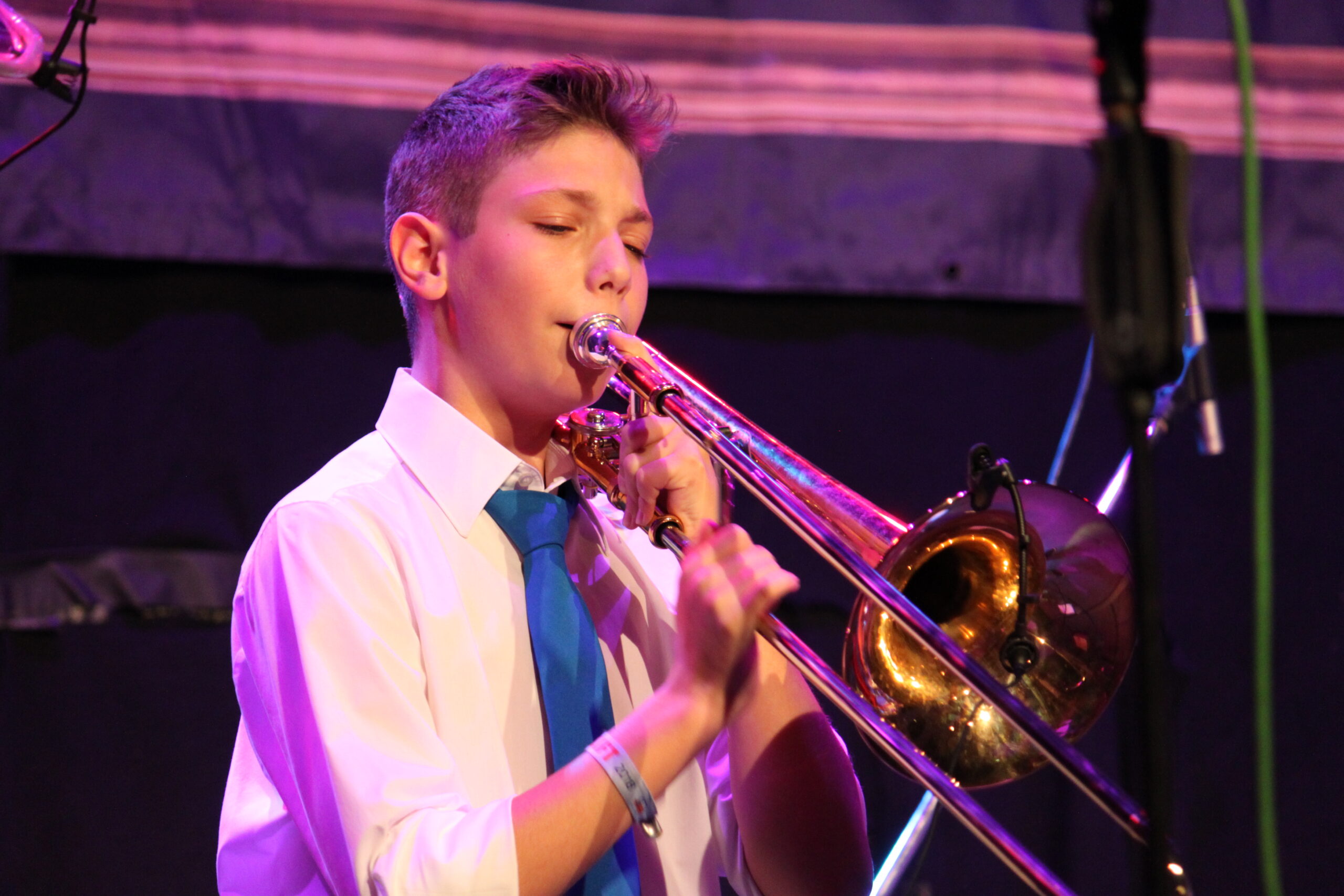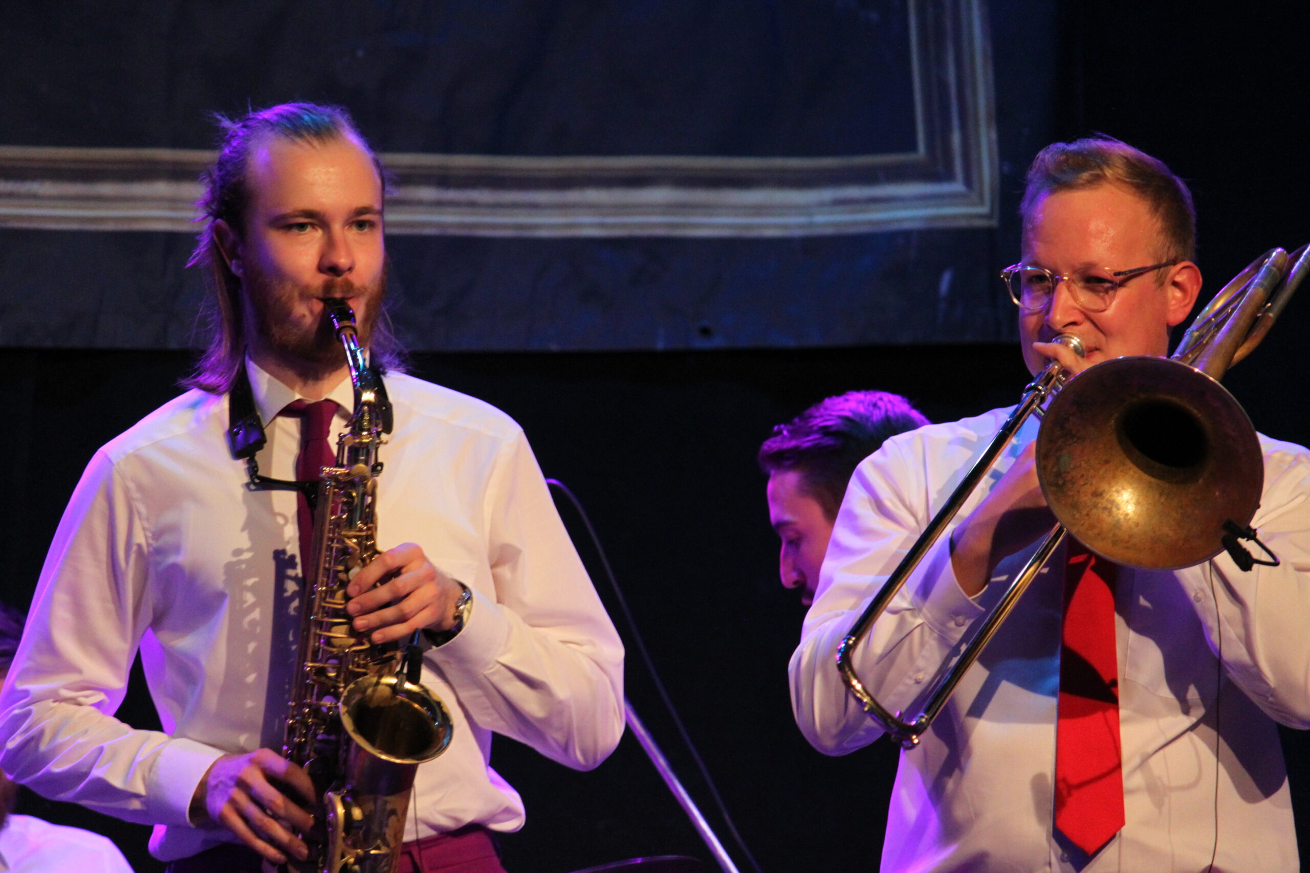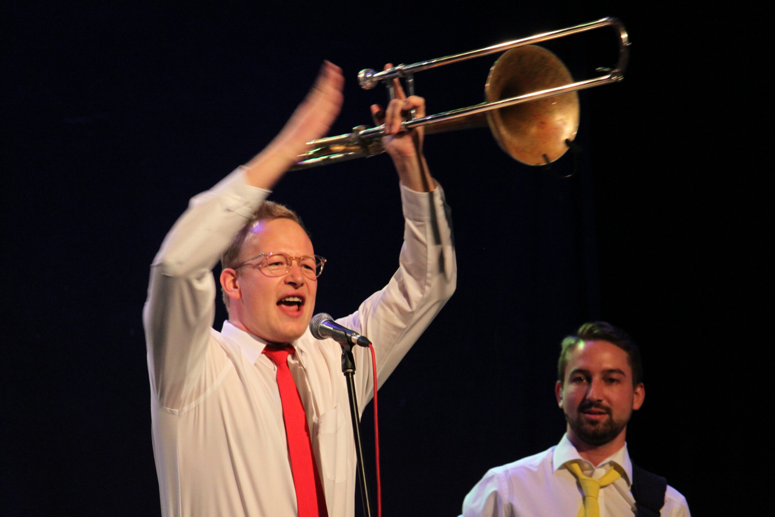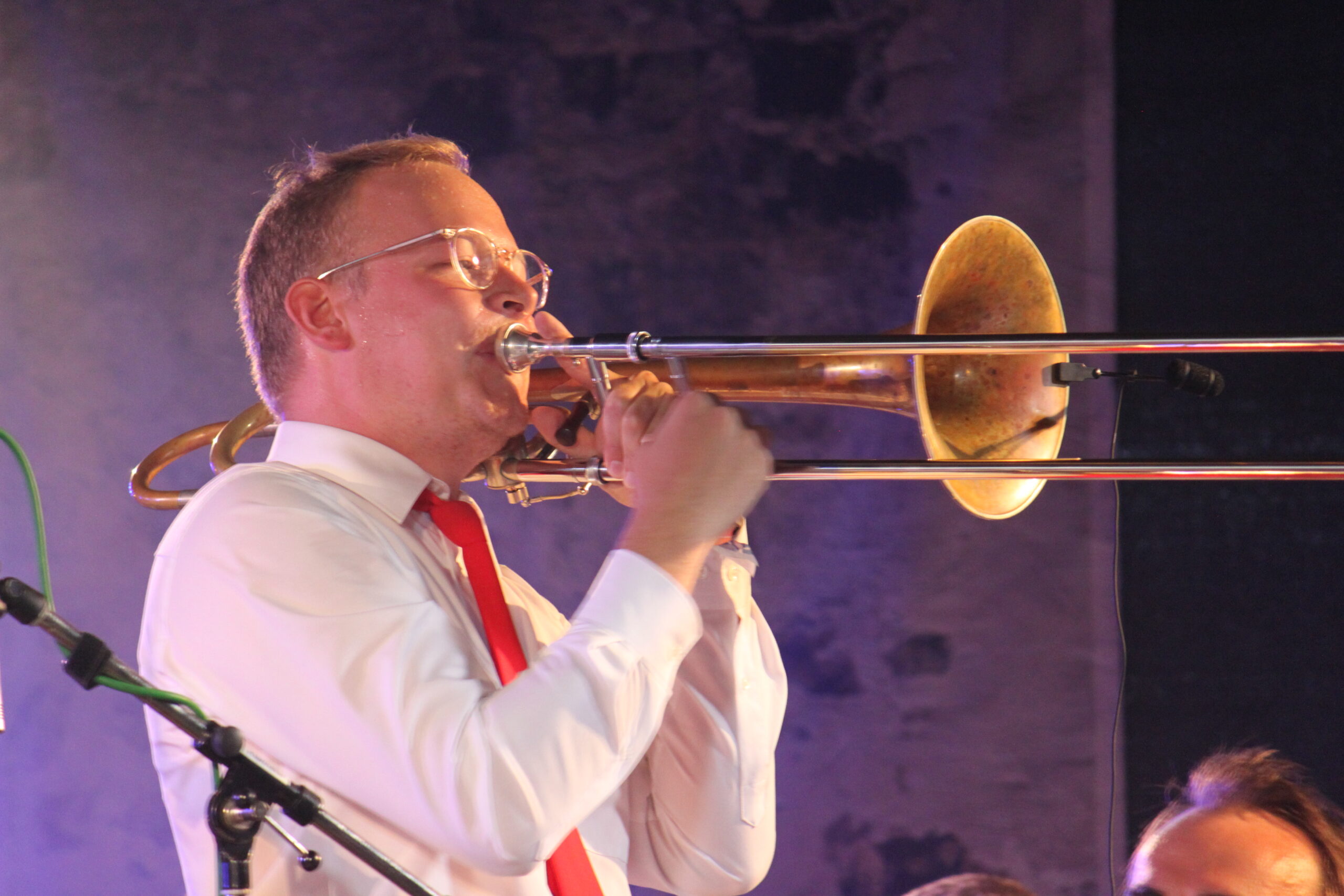 Gesegnet mit dieser Eigenschaft entschied sich Jan statt der naheliegenden Trompete jedoch für die Posaune, mit der er seitdem die Tonlagen des Trompetenregister unsicher macht.