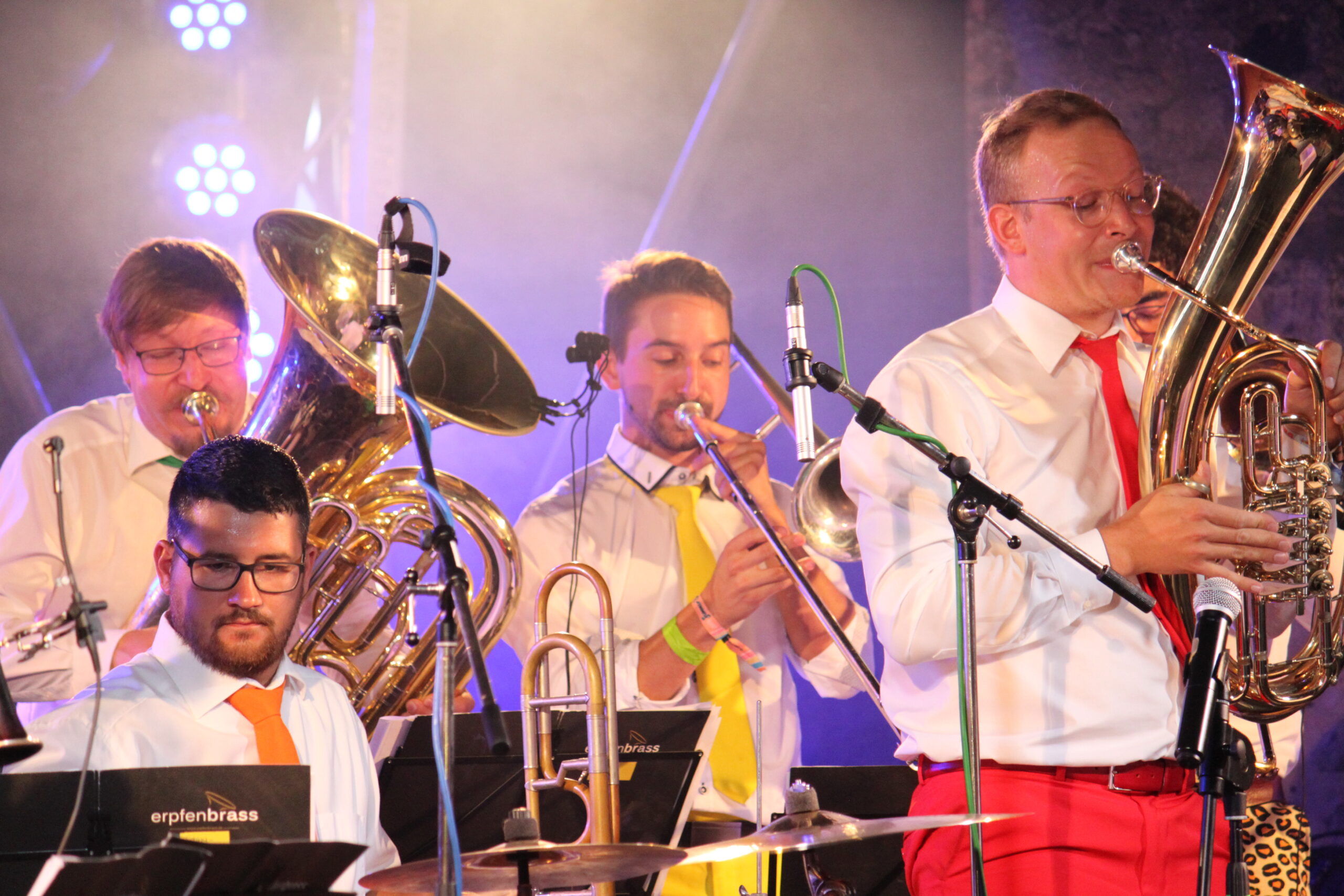 Dank der Vielzahl an musikalischen Gerätschaften, die bei einem Auftritt zum Einsatz kommen ist zudem sichergestellt, dass die sechs Jungs an mindestens 15 Instrumenten eine einzigartige Besetzung geschaffen haben. Mittlerweile sind alle gängigen Instrumente des Tiefen Blechs, Trompete, Schlagzeug, Xylophon, Saxophon, E-Bass, Gitarre, Akkordeon und viele weitere Instrumente fester Bestandteil des „Erpfen-Sounds“.