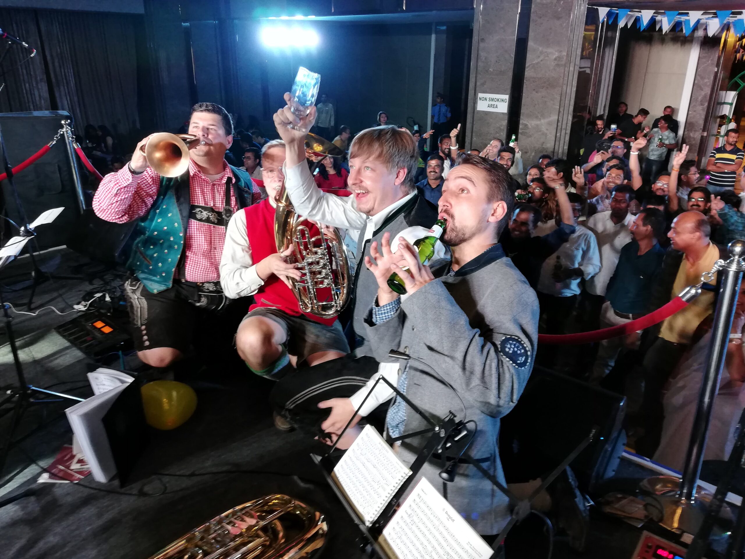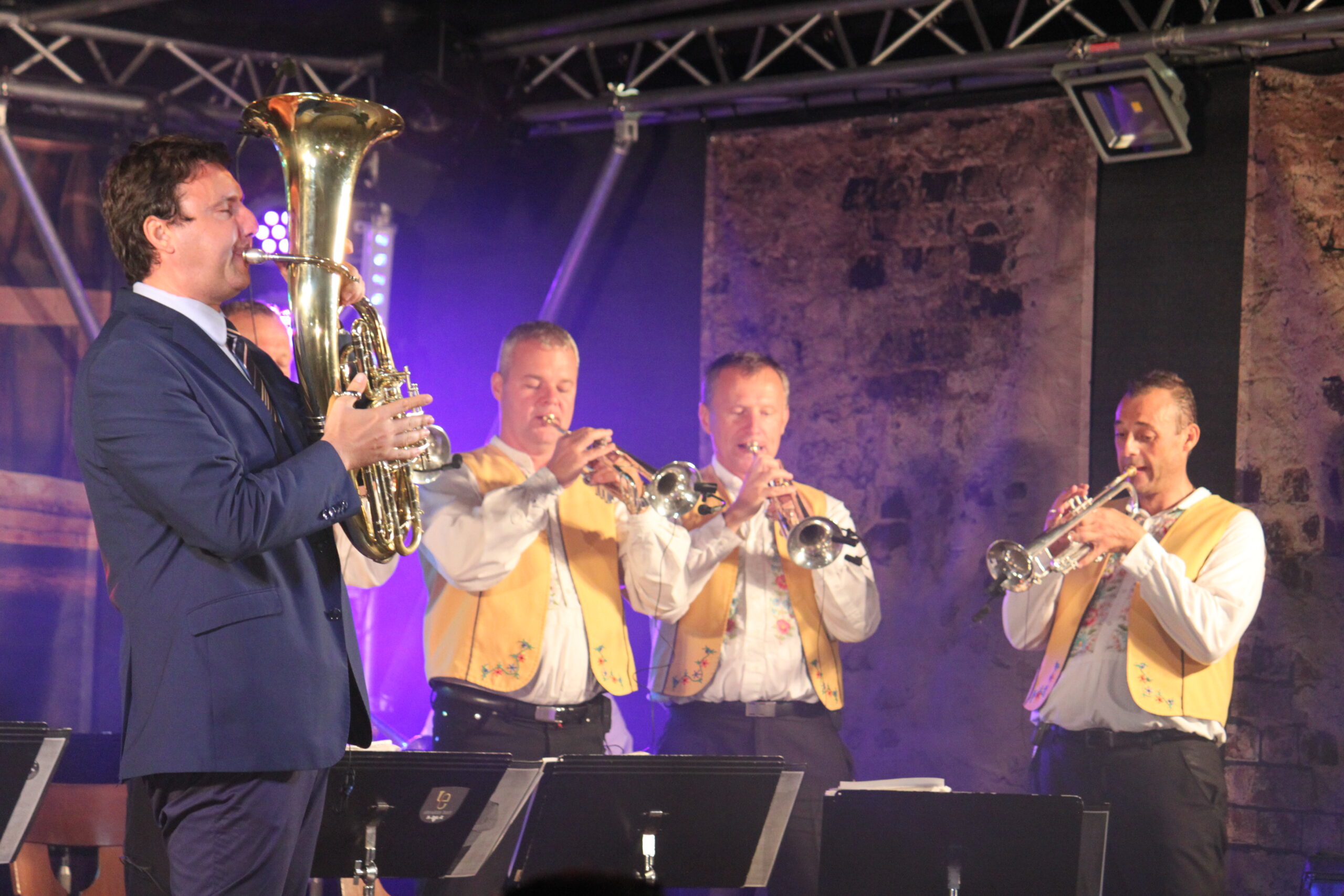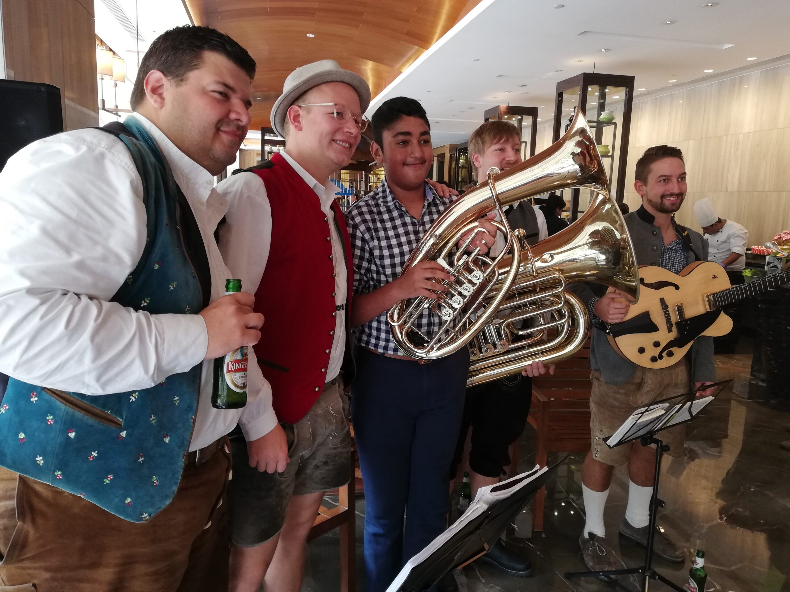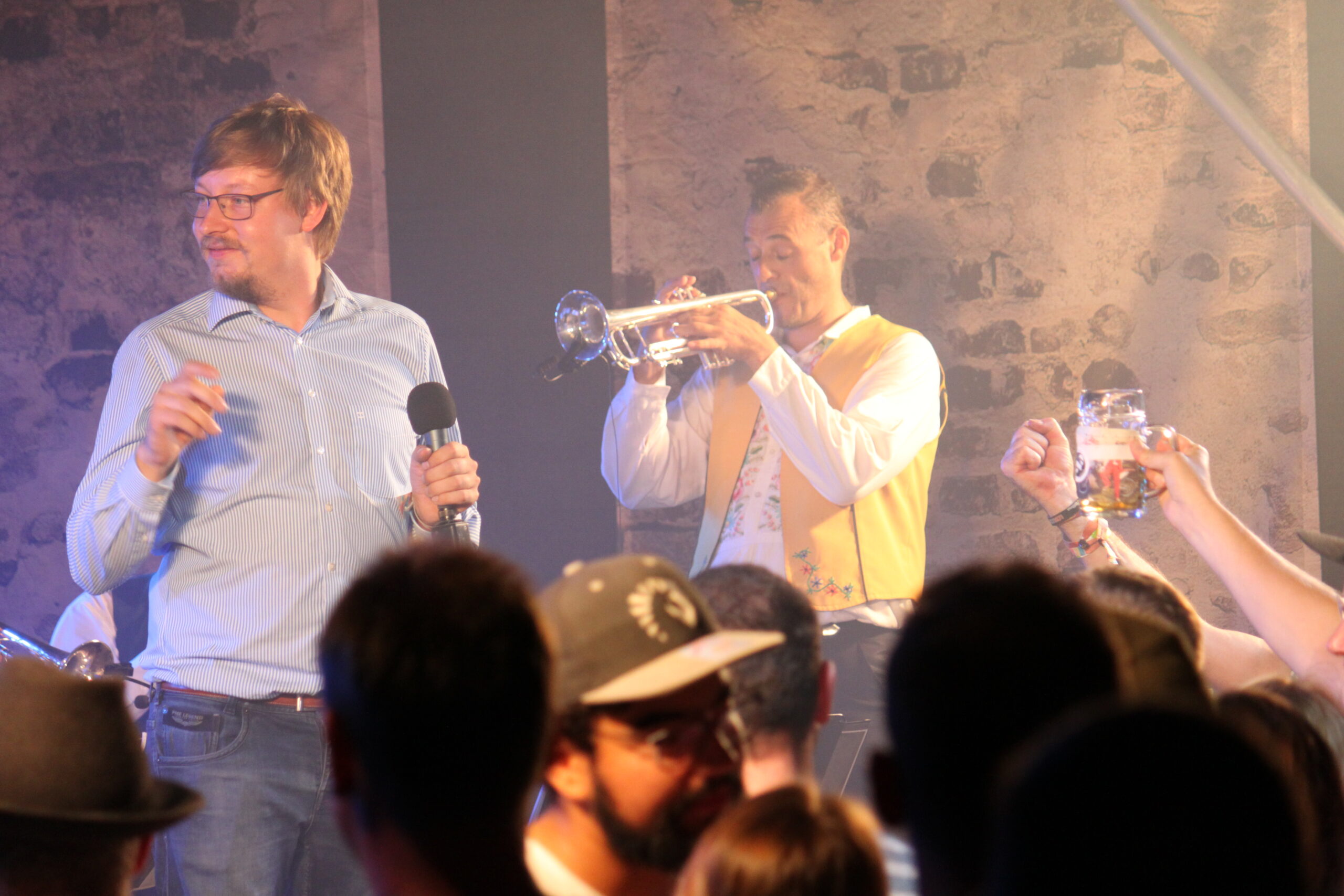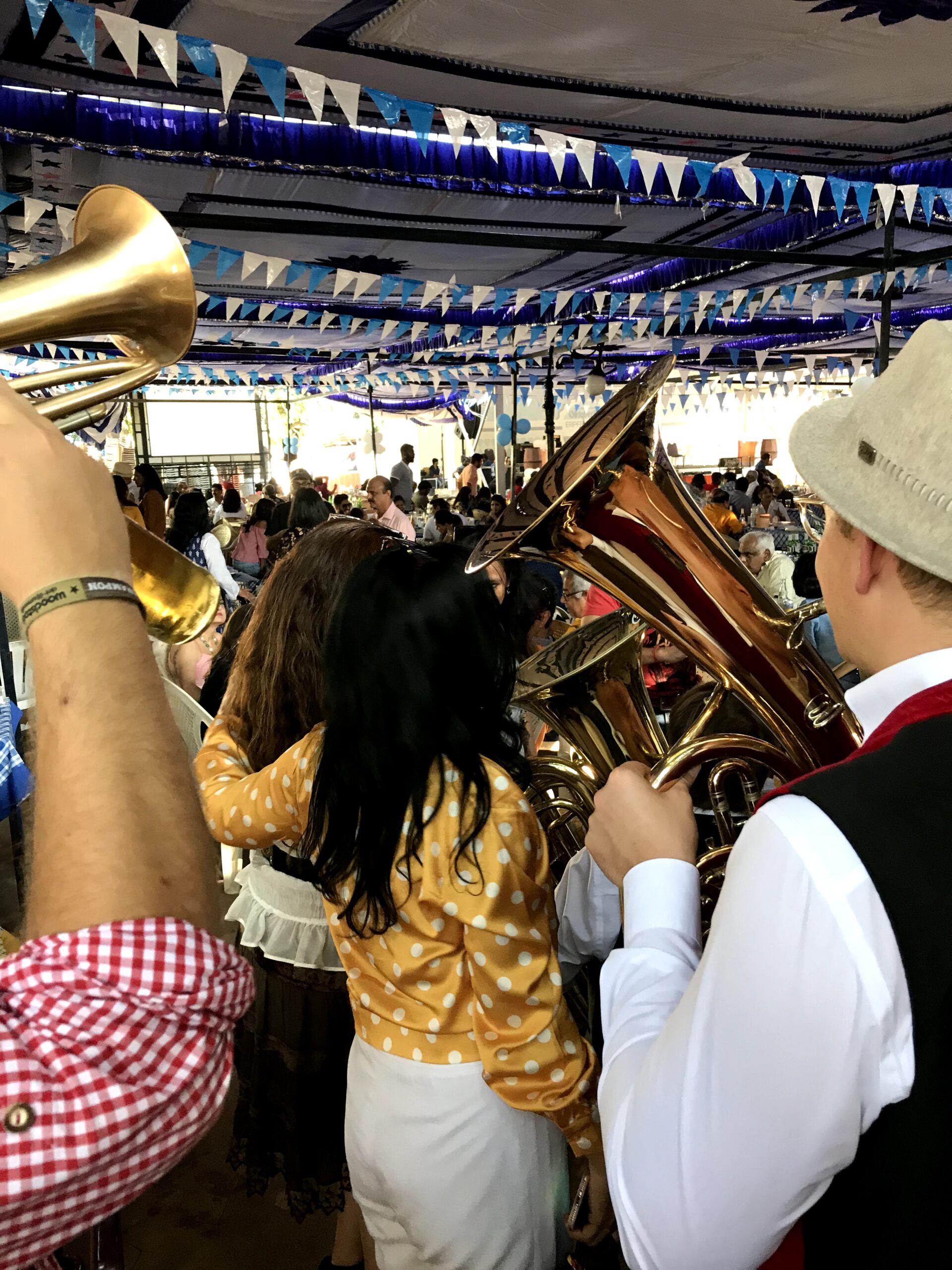 "Hey Christian, wir sind grad im Nachbar Ort und spielen hier ne silberne Hochzeit mit ErpfenBrass. Kommsch gschwind vorbei?"